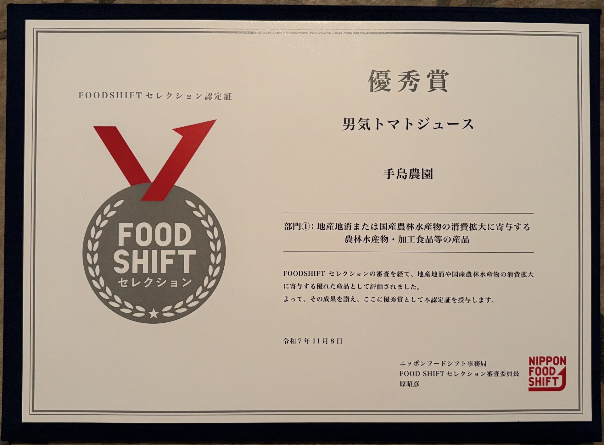 農林水産省主催「FOOD SHIFT セレクション2025」にて当農園の「男気トマトジュース」が優秀賞を受賞しました。FOOD SHIFTセレクションとは「農業の甲子園」のようなイベントで、今回は全国各地から農産物や加工 […]